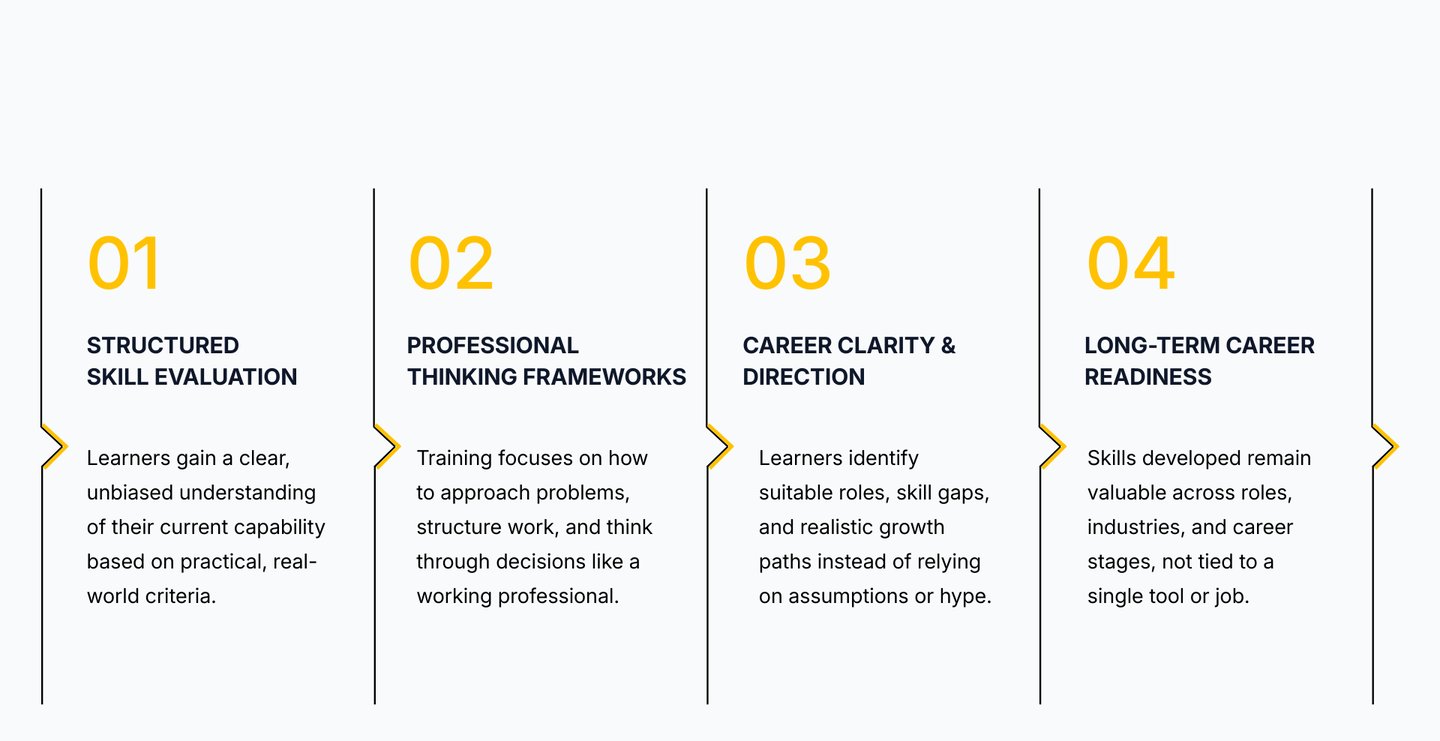 " Across industries, hiring decisions are increasingly based on structured skill evaluation rather than academic performance alone. The TOP Method is designed around this industry-validated framework testing capability, observing execution patterns, and mapping clear learning pathways before career progression "