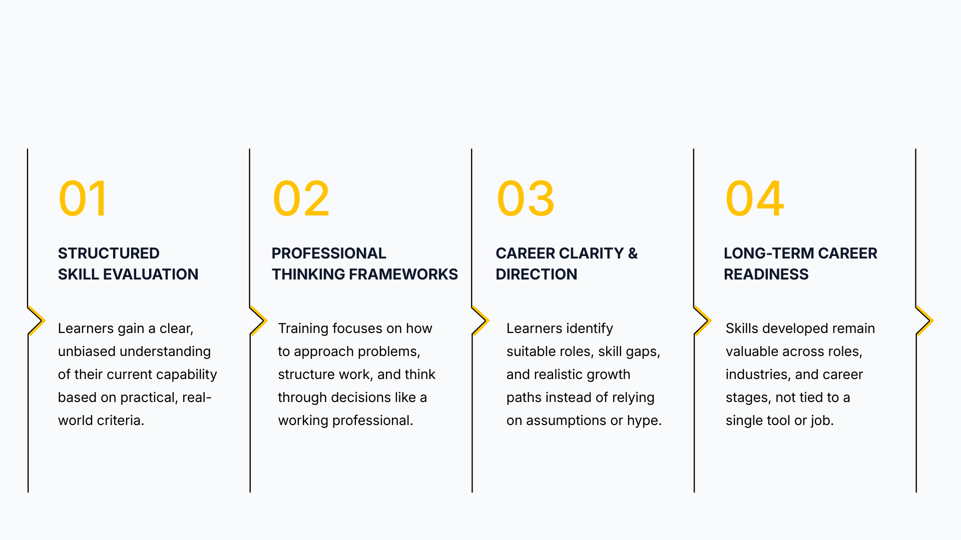 Learners develop clarity, structure, and professional readiness that extends beyond a single role or qualification.
