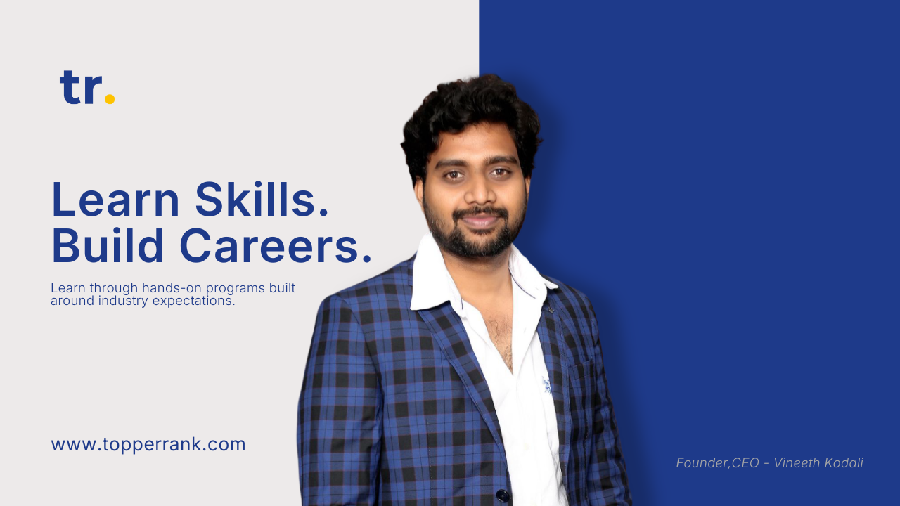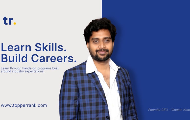 TopperRank is a skill-focused education platform dedicated to helping students develop real abilities, prepare for internships, and confidently step into rewarding careers. We bridge the gap between academic knowledge and practical industry expectations through structured learning paths, real-world projects, and outcome-oriented guidance.